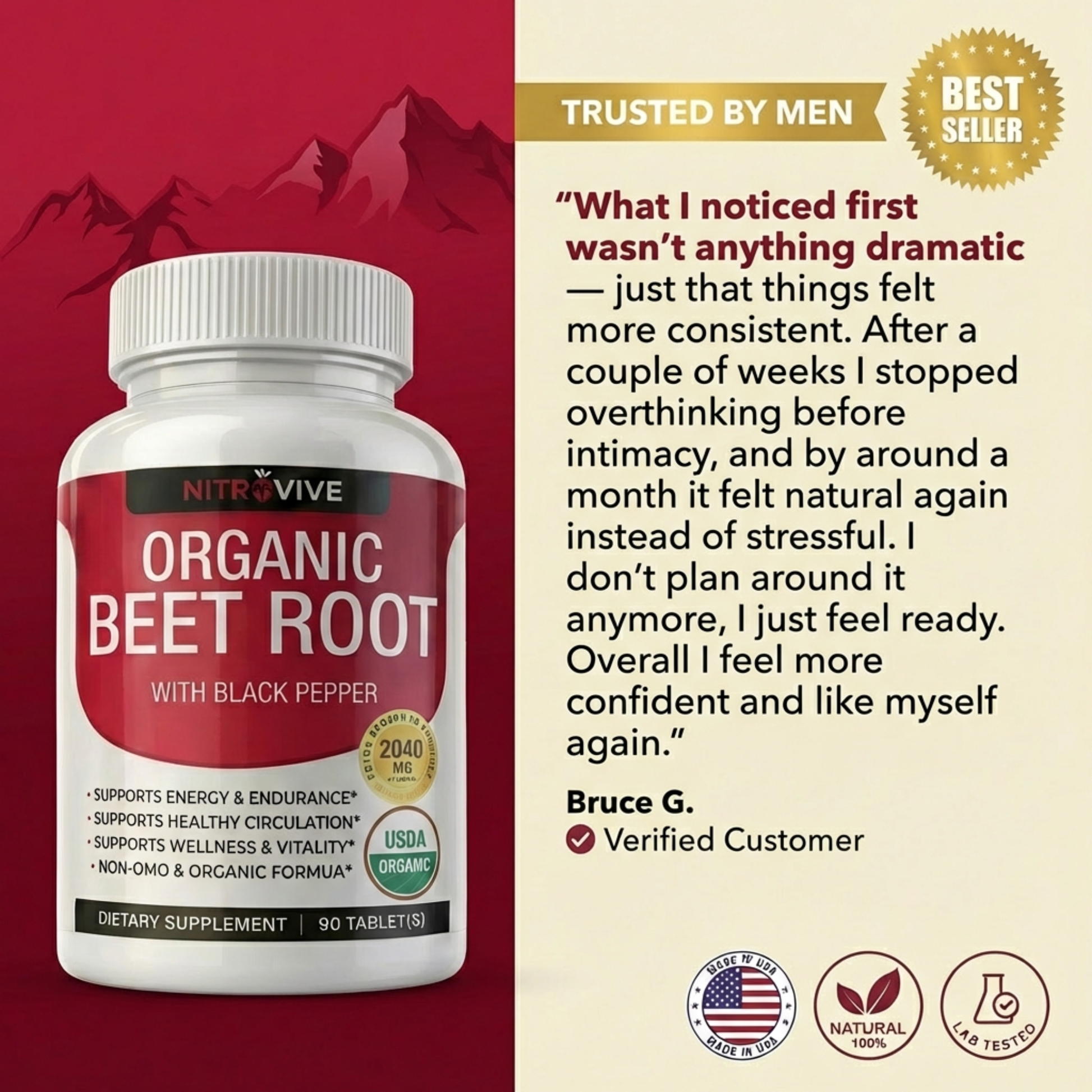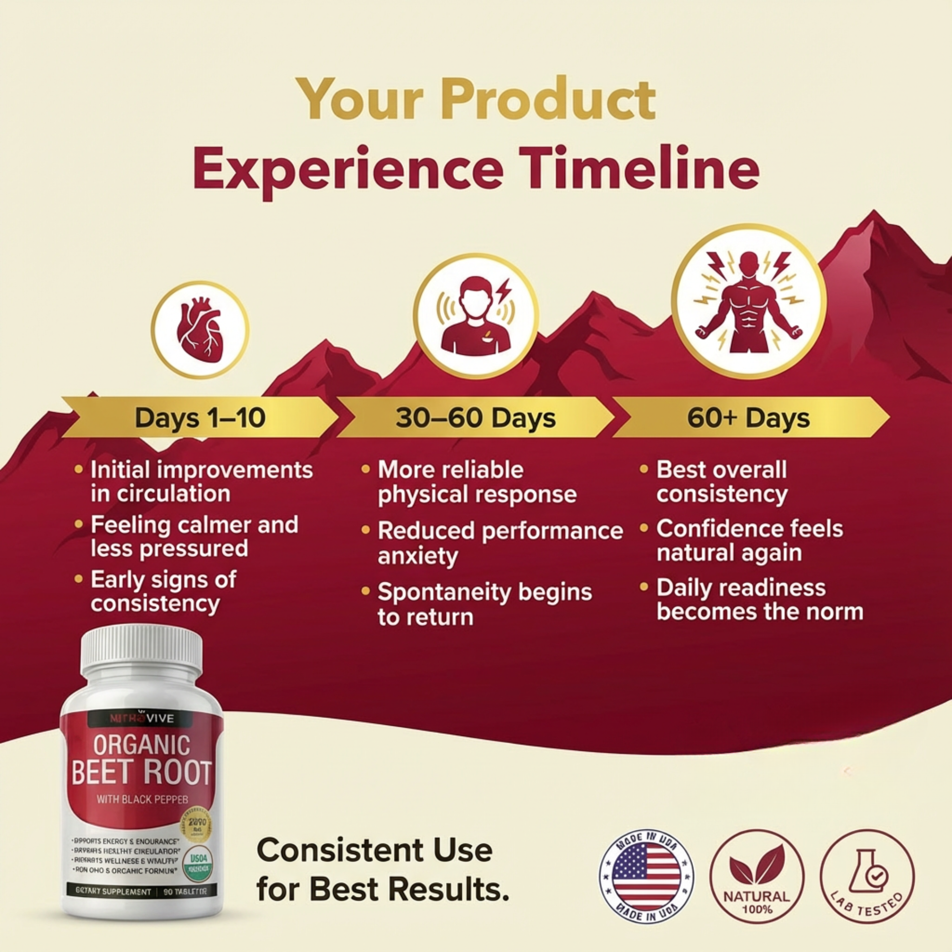 These nitrates are converted into nitric oxide, which helps blood vessels relax and function properly. This pathway keeps working even when age, stress, or anxiety limit other supplements. In real life, this means more consistent physical response instead of hit-or-miss results.